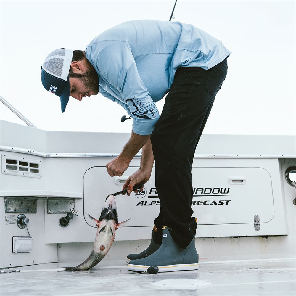 100% waterproof, and features a slip-resistant Chevron outsole this ankle deck boot is handcrafted specifically for Off-Shore anglers. This deck boot is perfect for any on-the-water athlete looking for protection with slip-on-the-go styling and is constructed with hand-layered rubber.