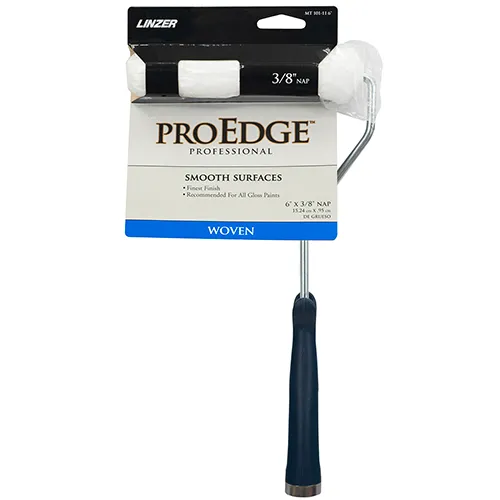 This Pro Edge 6 inch roller cover has a 3/8 inch nap and the roller frame features an 11 inch handle.