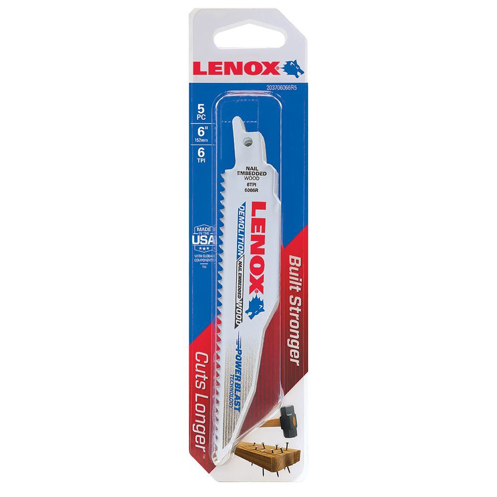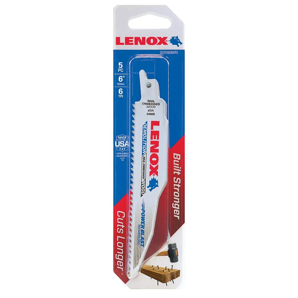 Lenox® 6" 6 TPI Demolition Reciprocating Saw Blade 5 Pack