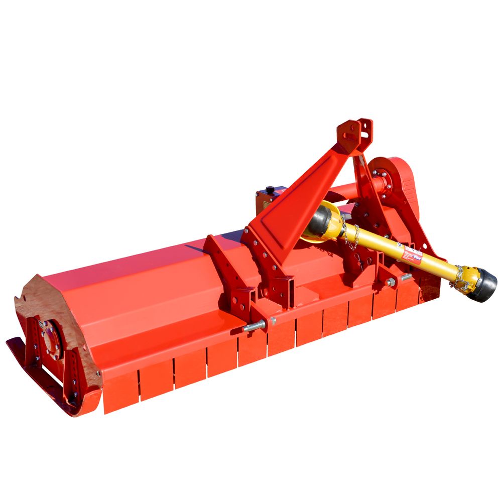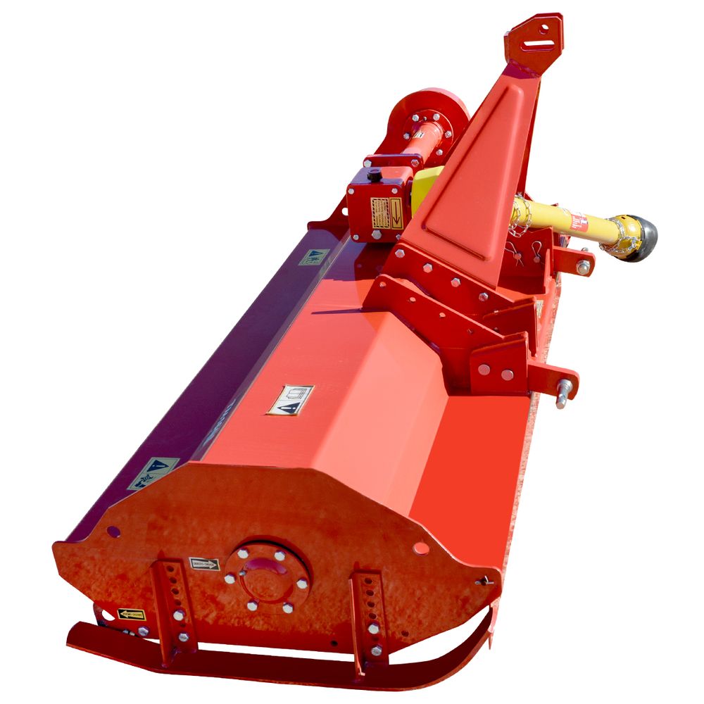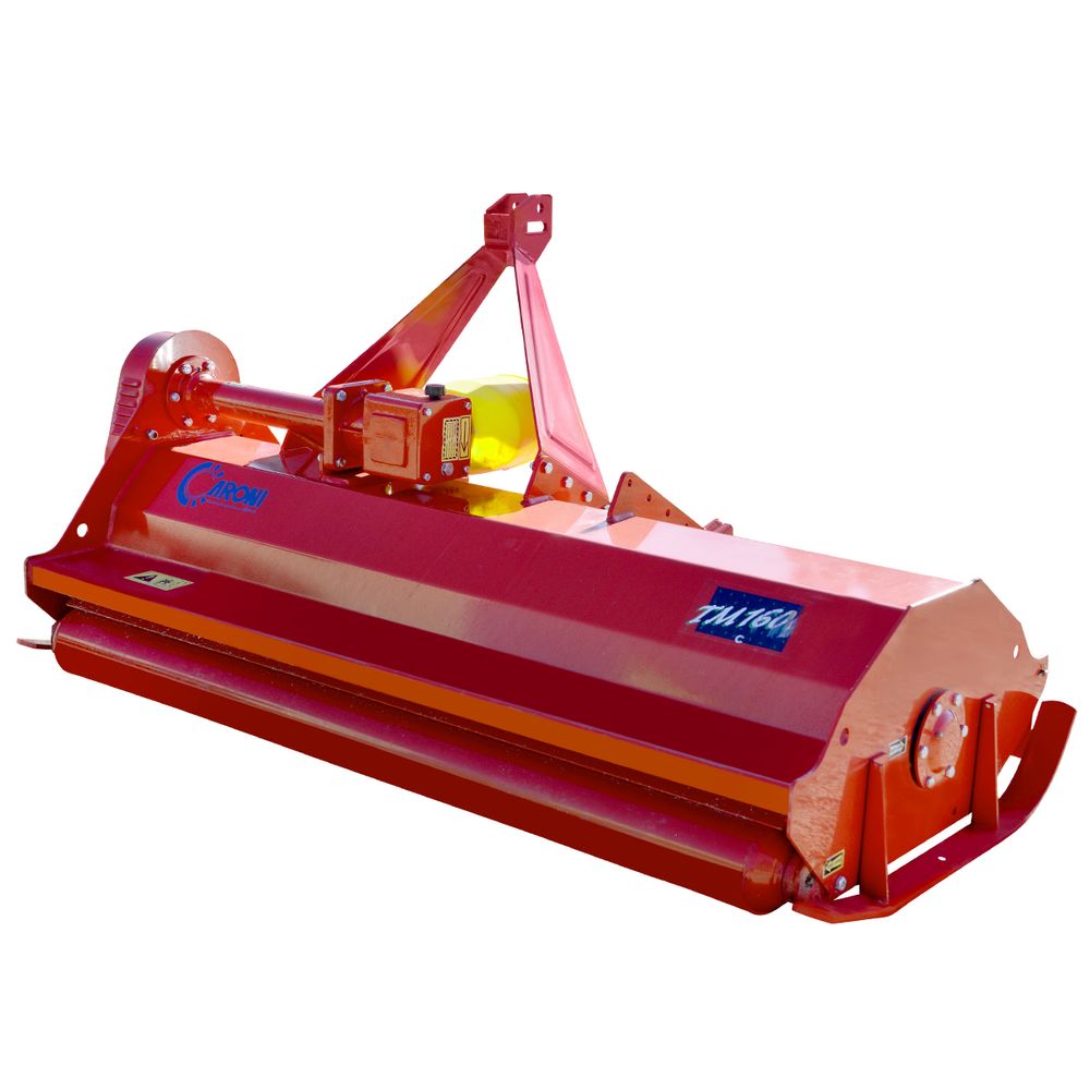 The Caroni TM1600BSC 63 inch Flail Mower has a Type B rotor with 48 blades which can be used for clearing undergrowth and cutting bushes. An additional rotor can be installed for added cutting. The TM1600BSC Flail Mower is ideal for cutting stalks after harvest, mowing fields, and the right of way on roads. The cutting height is set by adjusting the rear roller and a scraper is included to keep the mower clean. The A-Frame can be mounted in two different positions and the rotor is driven by 3 belts. The TM1600BSC Flail Mower can be used with tractors rated at 30 to 60 horsepower.