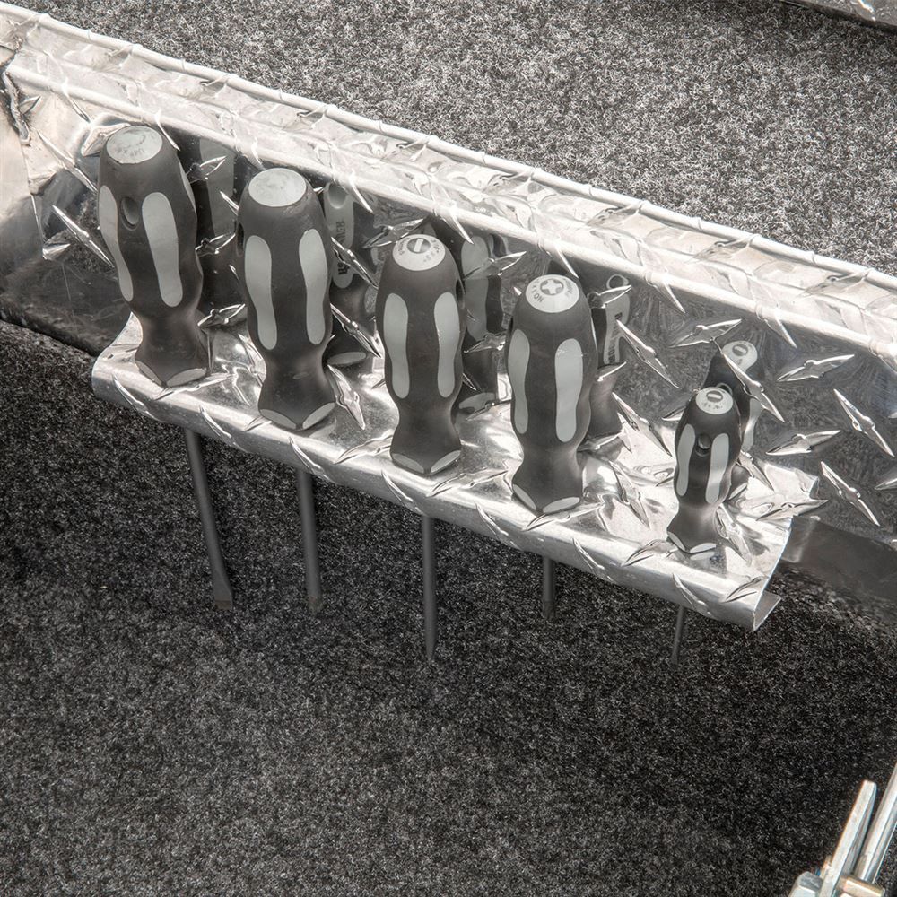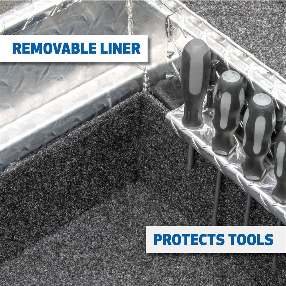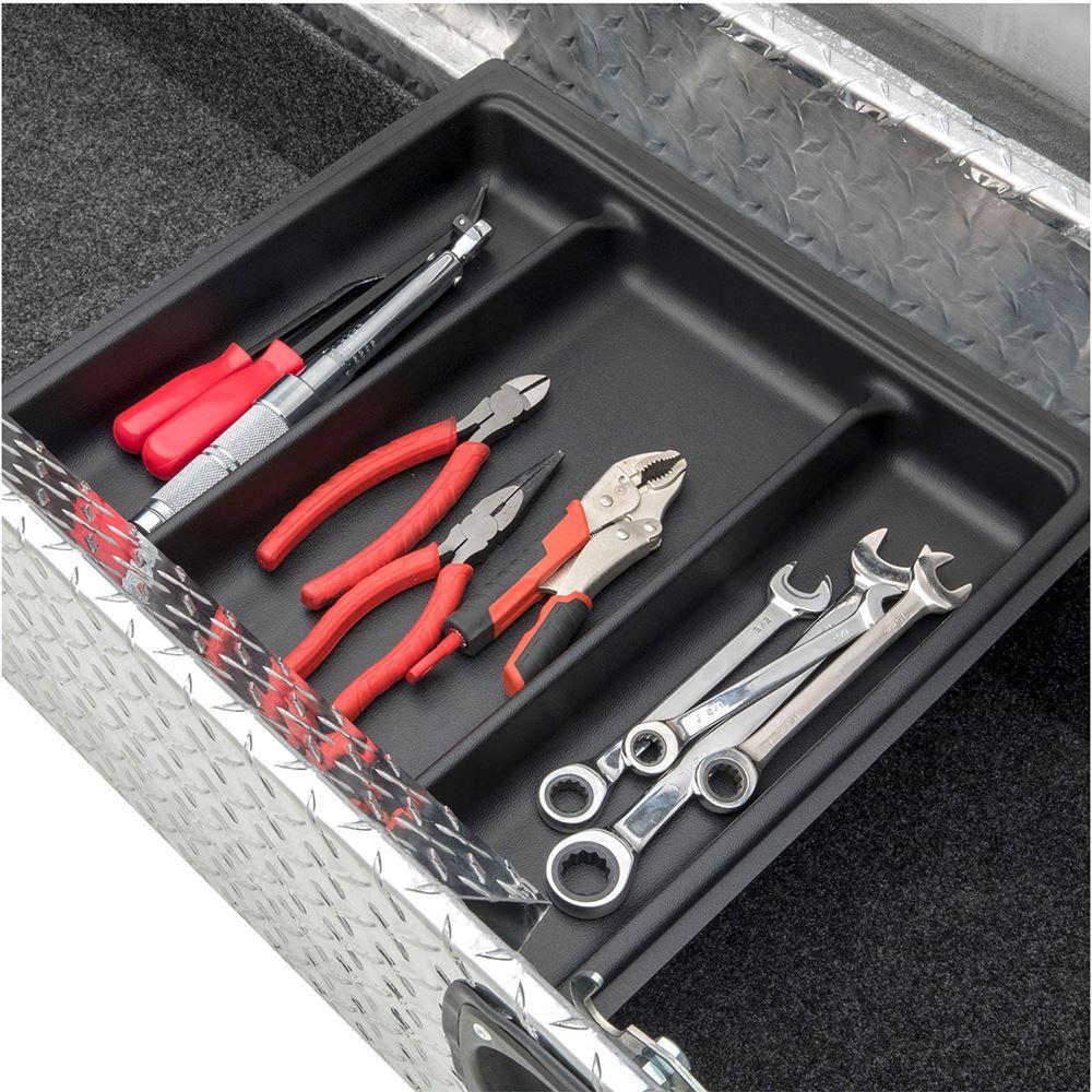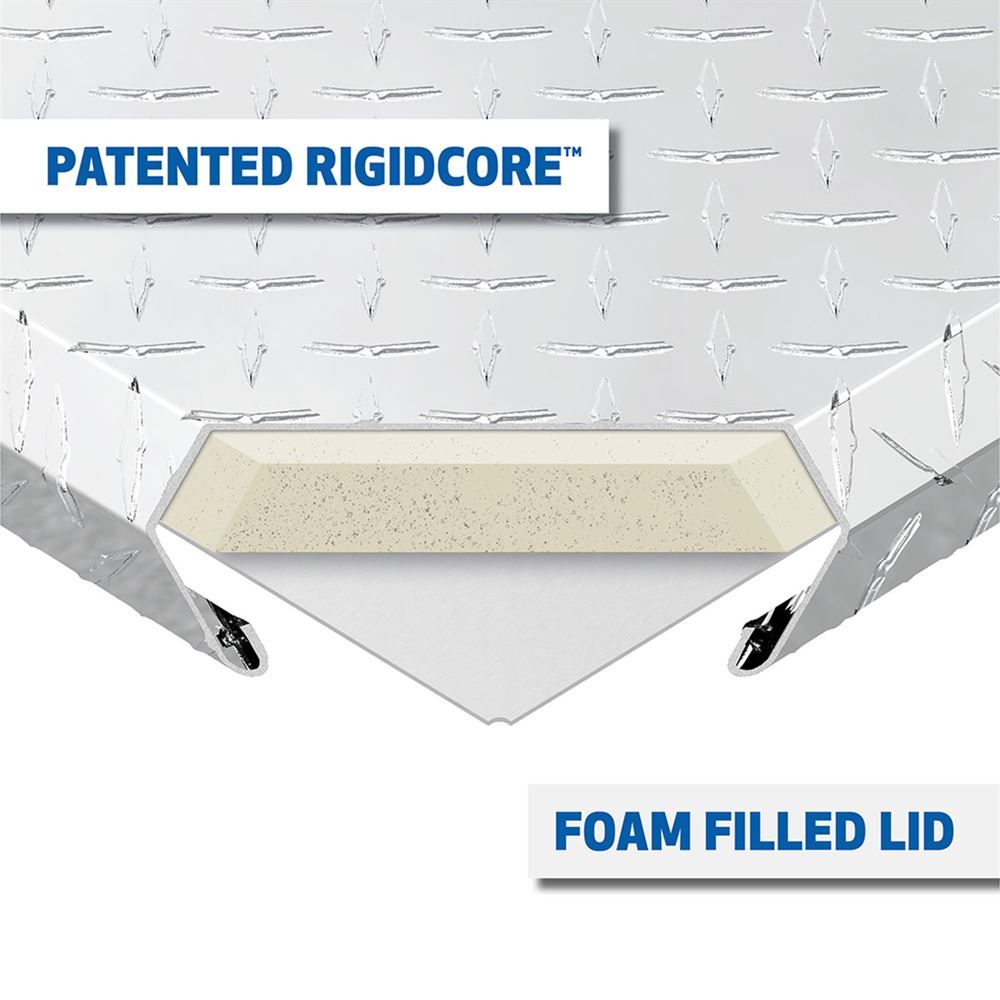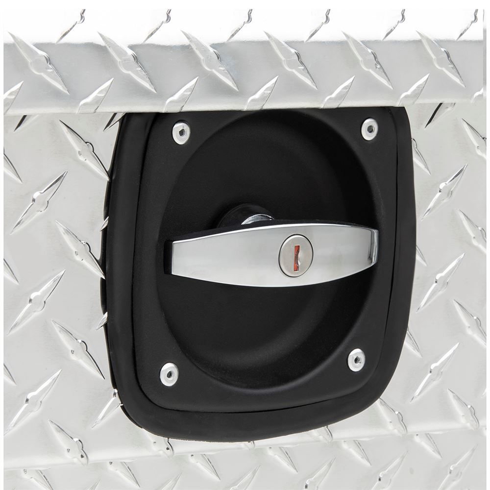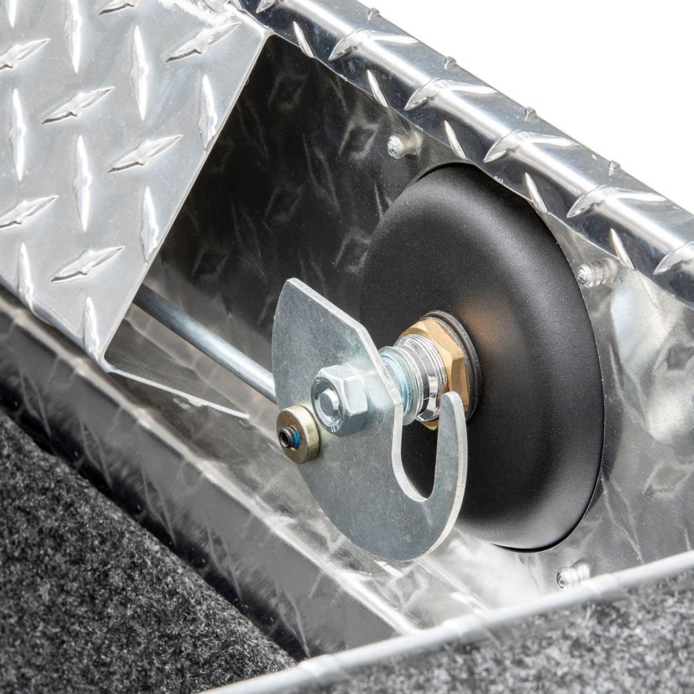 This D-SL-69-LP-R is a low profile box with single fully foamed lids, which helps resists buckling or warping under pressure and weight. On each side of the box are sturdy, stainless steel locks with a latch, keeping your items safe, even when you're not watching them. Two super-duty lift cylinders raise and automatically lower, securing your belongings, even when your hands are full. The weather stripping that comes with this model also prevents dirt and moisture from damaging the box's contents.