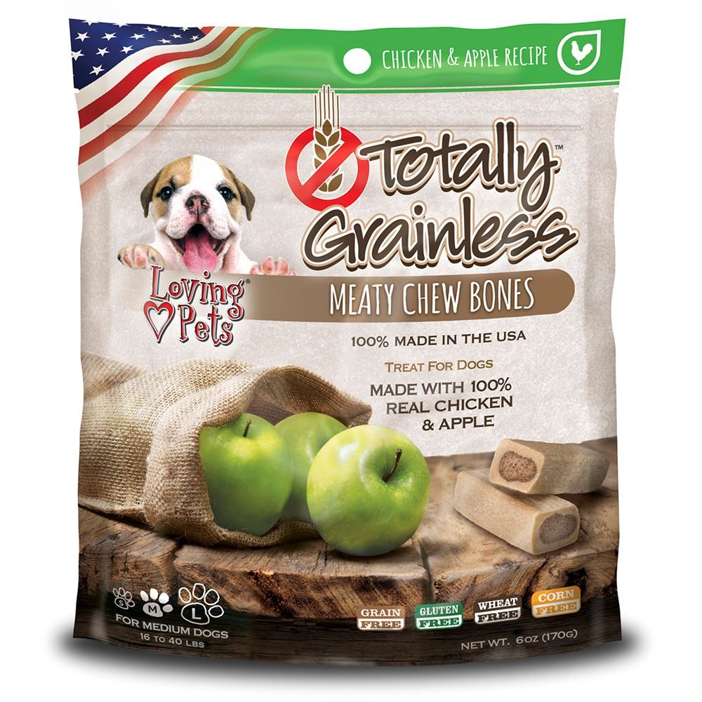 Need a dog treat free from grain, gluten, wheat, and corn? This 6 oz. bag of Chicken & Apple treats will do the trick made with 100% real chicken and your dog will enjoy them.
