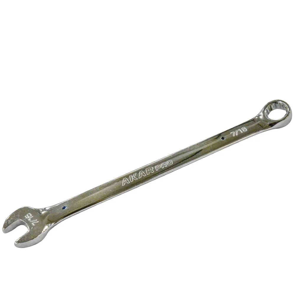 This Spanner 7/16" extra long combination wrench has 12 points and is made with forged tough alloy steel. This wrench is rust / corrosion resistant and is also heat treated for maximum strength.