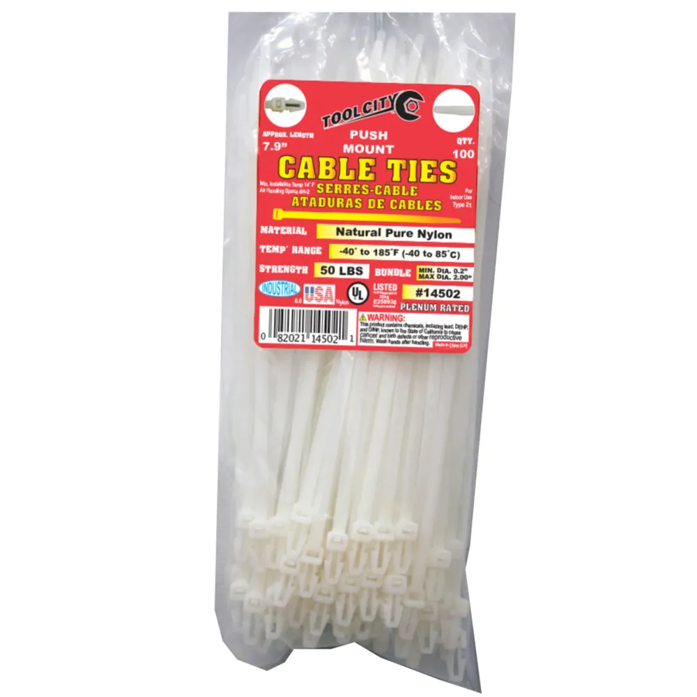 7.9 in. Push Mount Natural Cable Ties 100-Pack