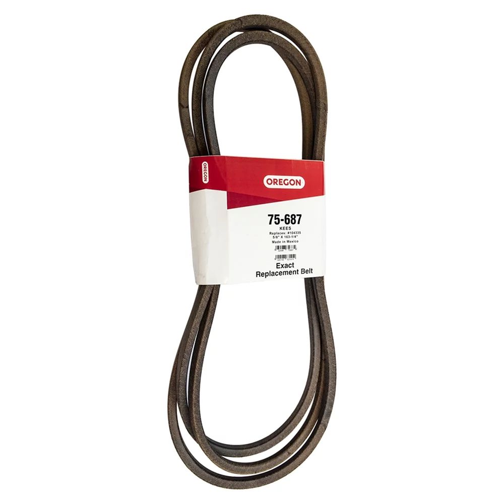 This Oregon 75-687 premium lawn mower deck belt fits 52" deck Kees/Yazoo Max 2 series mowers. This 163 1/4" X 5/8" wrapped clutching belt replaces Kees 104335.