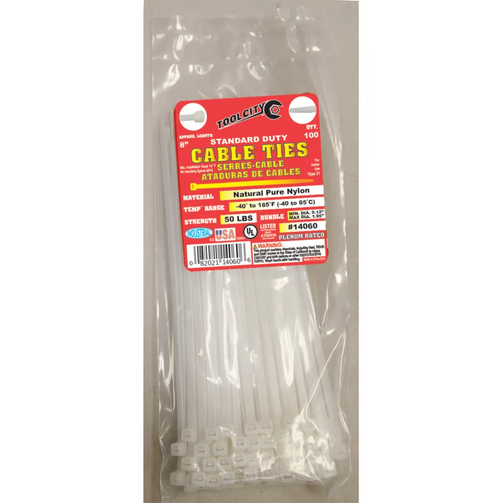 This 100-pack of 8 inch long standard duty cable ties helps to keep them organized and prevent damage.