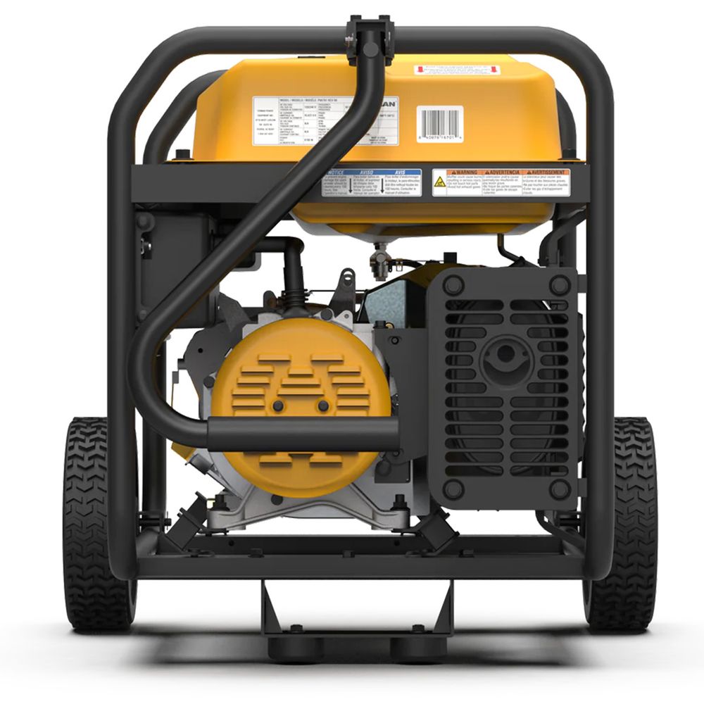 This 8350W recoil start generator is an easy start and provides comfort during power outages. It offers a multi-feature control panel with cover outlets and a 8-gallon tank that provides up to a 12-hours of run time.