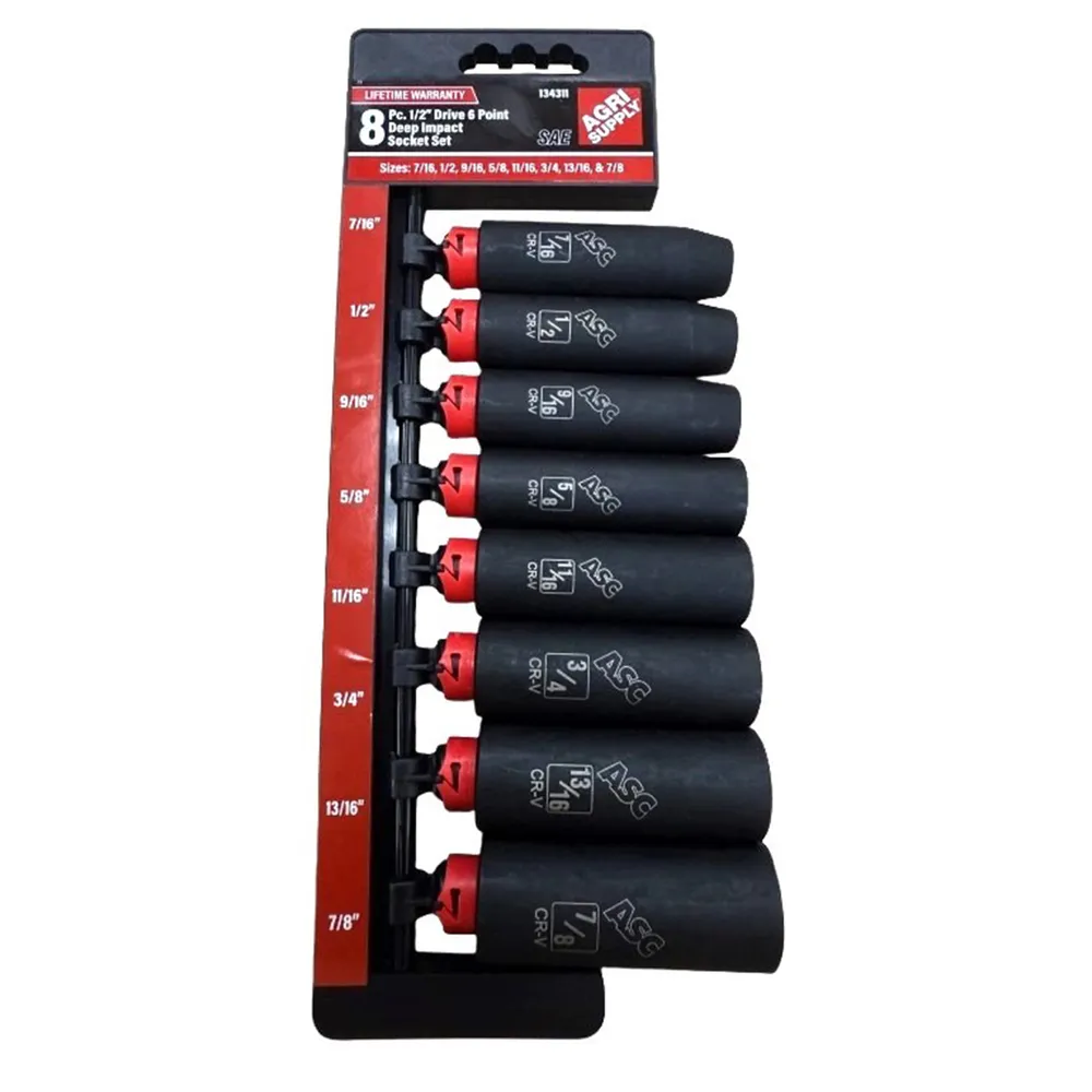 Agri Supply® 8-Piece 1/2 in. SAE 6-Point Deep Impact Socket Set