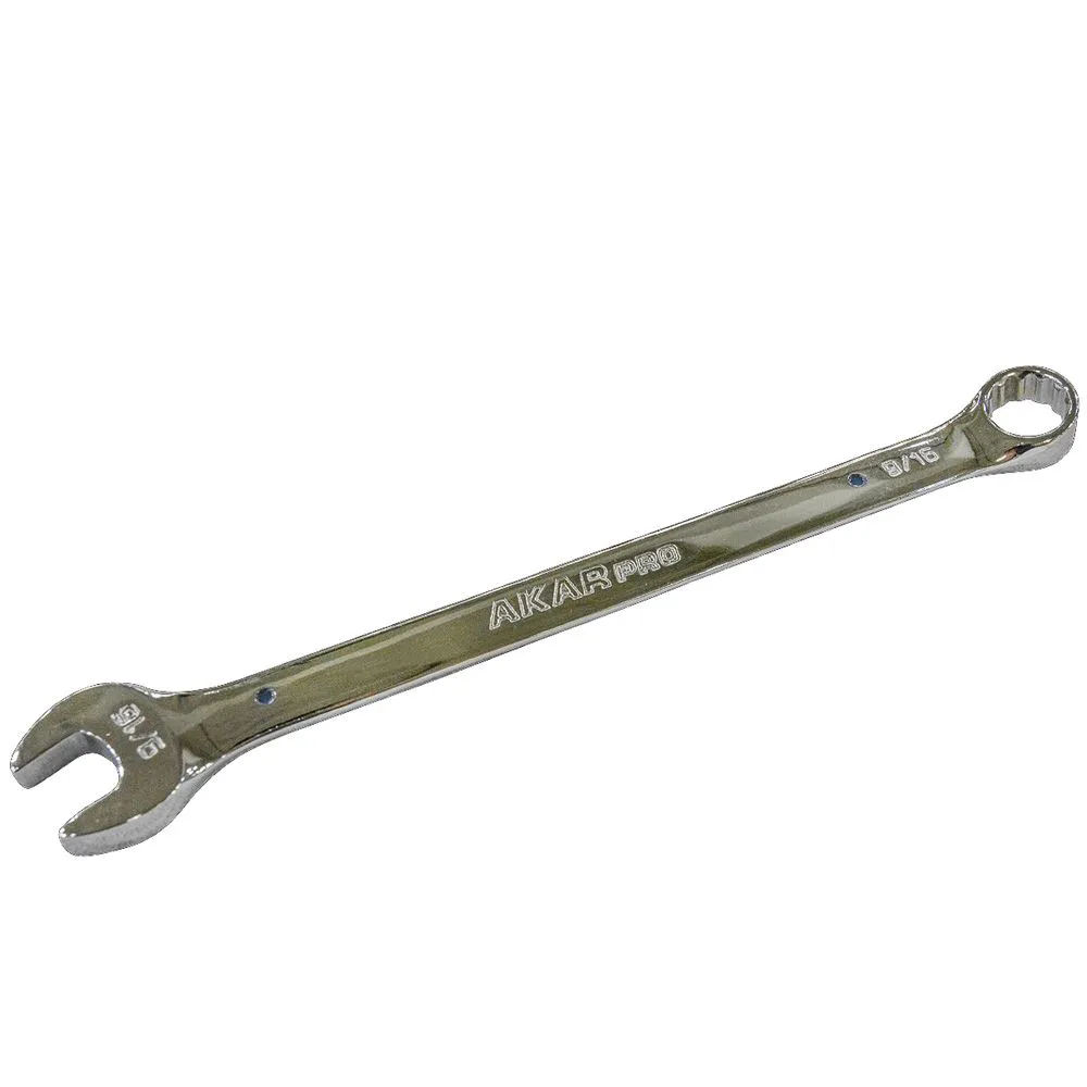 This Spanner 9/16" extra long combination wrench has 12 points and is made with forged tough alloy steel. This wrench is rust / corrosion resistant and is also heat treated for maximum strength.