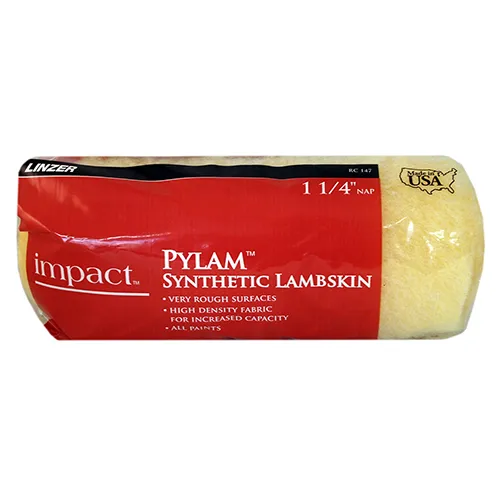 This Nine Inch Impact® Pylam® Synthetic Lambskin Roller Cover can be used with all paints and stains.