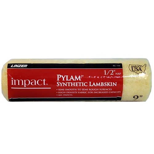 This Nine Inch Impact® Pylam® Synthetic Lambskin Roller Cover can be used with all paints and stains.