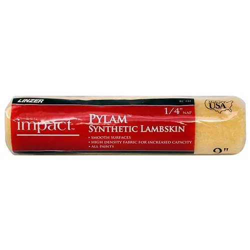 This Nine Inch Impact® Pylam® Synthetic Lambskin Roller Cover can be used with all paints and stains.
