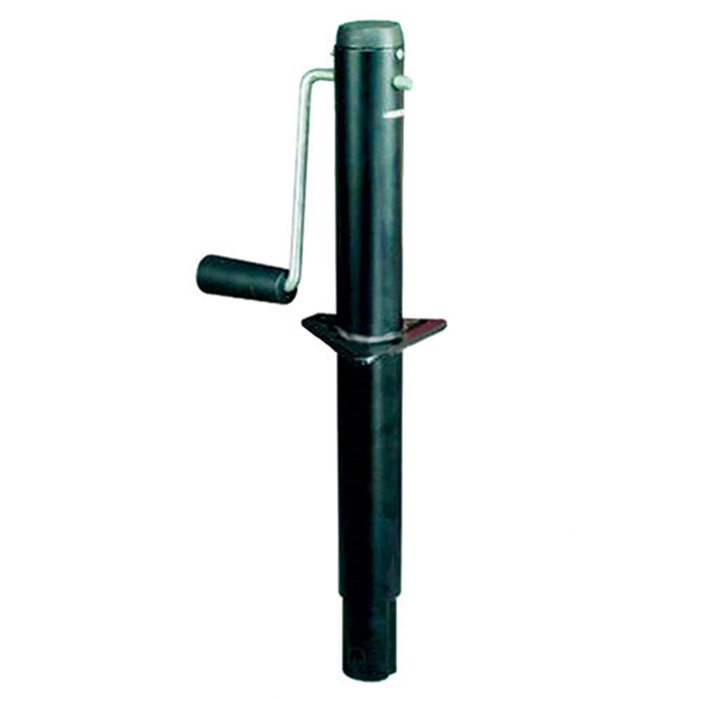 This A-frame jack is a useful tool to hold your trailer up so you can change tires or access areas underneath the trailer. It can support a weight up to 1,000 lbs. and has a 15 inch lift. There is a bracket that is applicable to bolt-on or weld-on devices. This round trailer jack is a side wind jack, and the handle features an internal acme threaded screw for smooth transitions when adjusting the height of the jack. Every 8 turns of the handle produces a 1 inch jack extension. There are two retractable lengths on this A-frame trailer jack that measure 8-1/2 in. and 21 in.