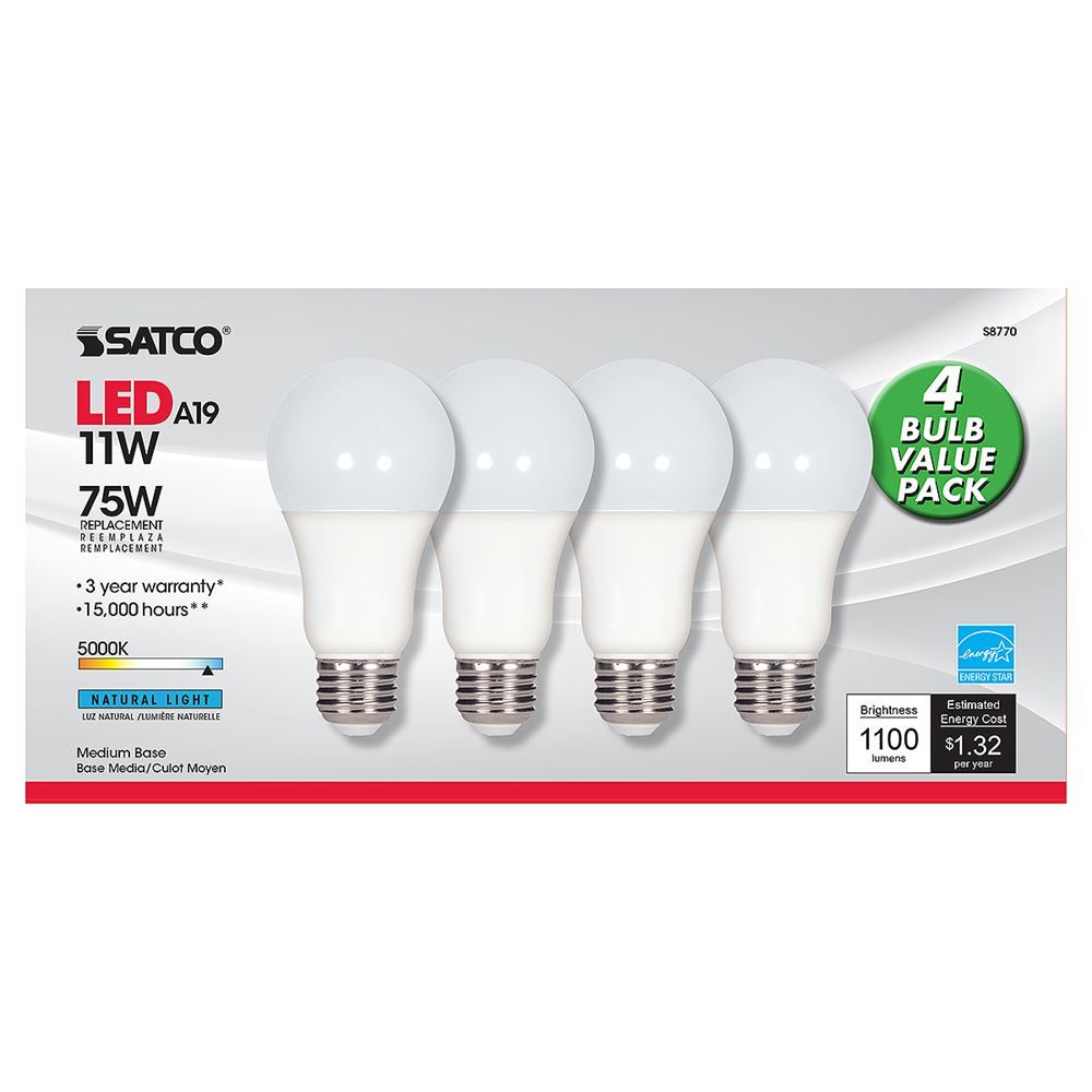 Satco® A19 LED Bulb, Equal to 75W-5000K, Natural Light