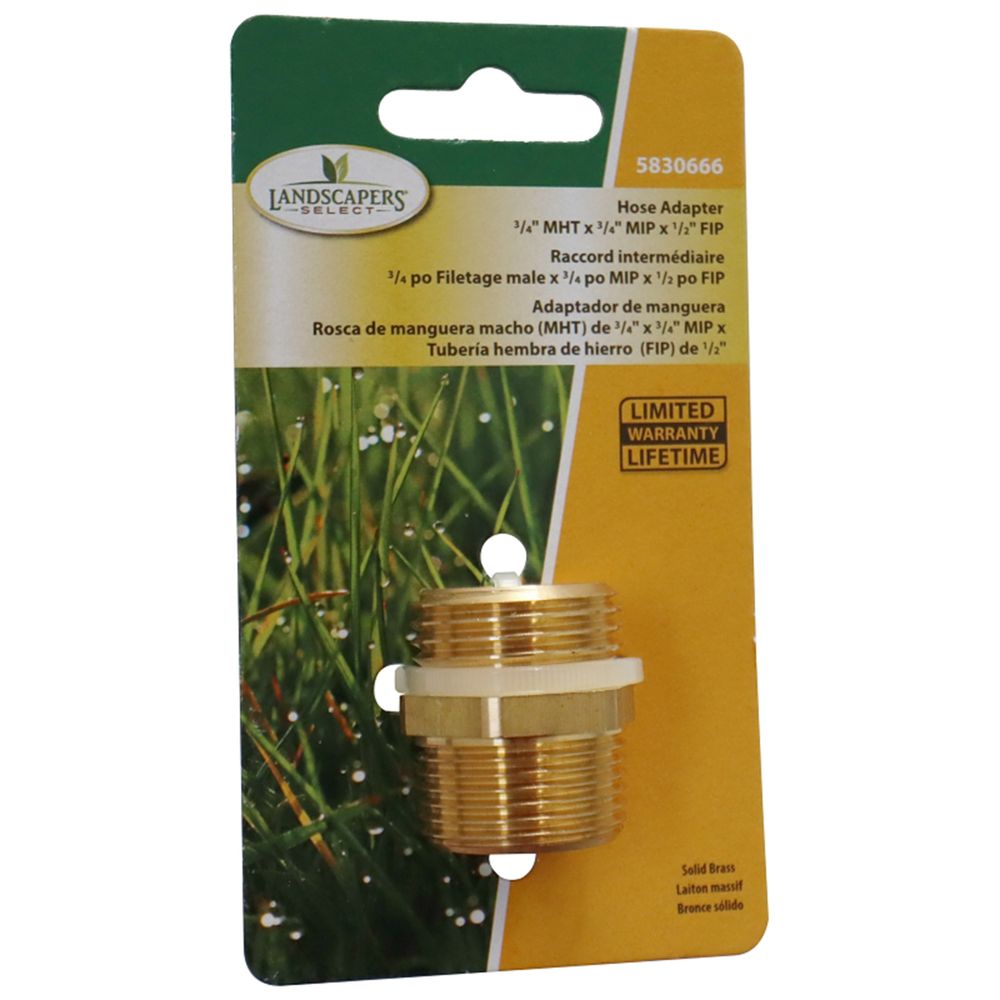 Landscapers Select Hose Adapter, 3/4 x 3/4 x 1/2 in, MHT x MIP x FIP, Brass