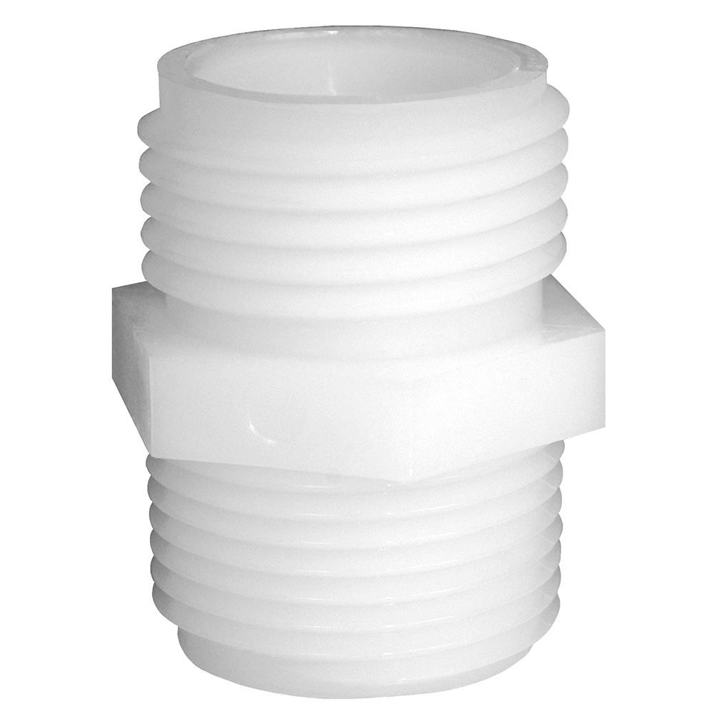 This Green Leaf 3/4 inch male GHT x 3/8 inch male NPT is used to connect a standard garden hose to a pipe or fitting with a 3/8" female NPT connection.