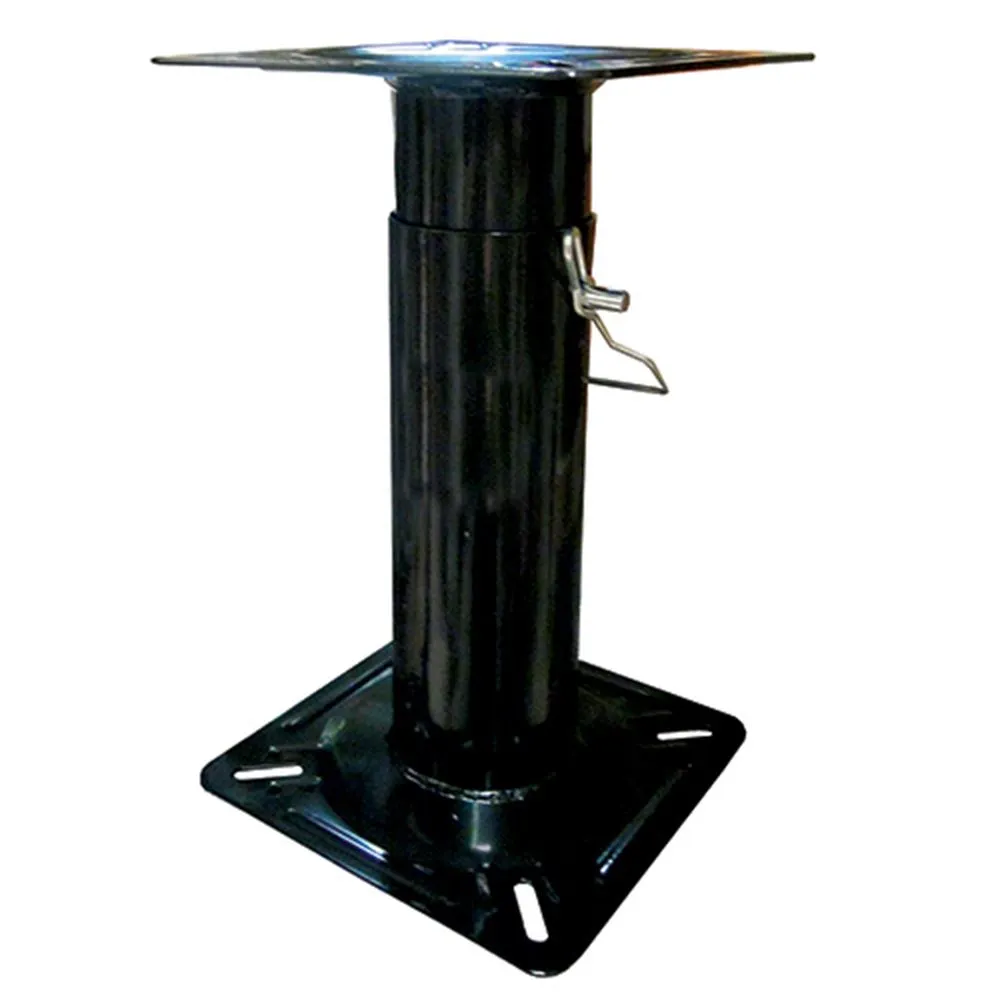 Get a boost with this adjustable boat seat pedestal. The black pedestal adjust on 2 inch intervals between 11-1/2 and 17-1/2 inches. Mounting plates are on both the boat and seat end of the pedestal.