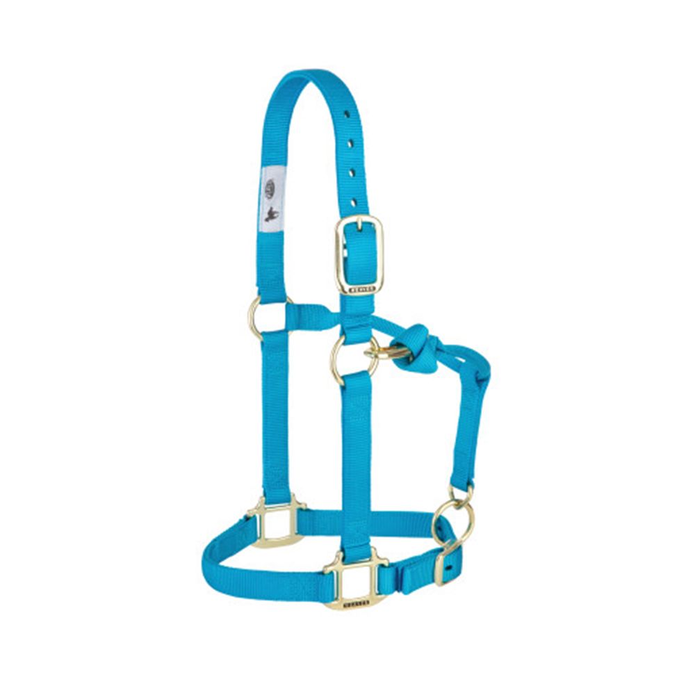 This Weaver™ Adj. Chin and Throat Snap Halter 1 In. Small, light blue is manufactured from premium nylon and hardware to stand the test of time.