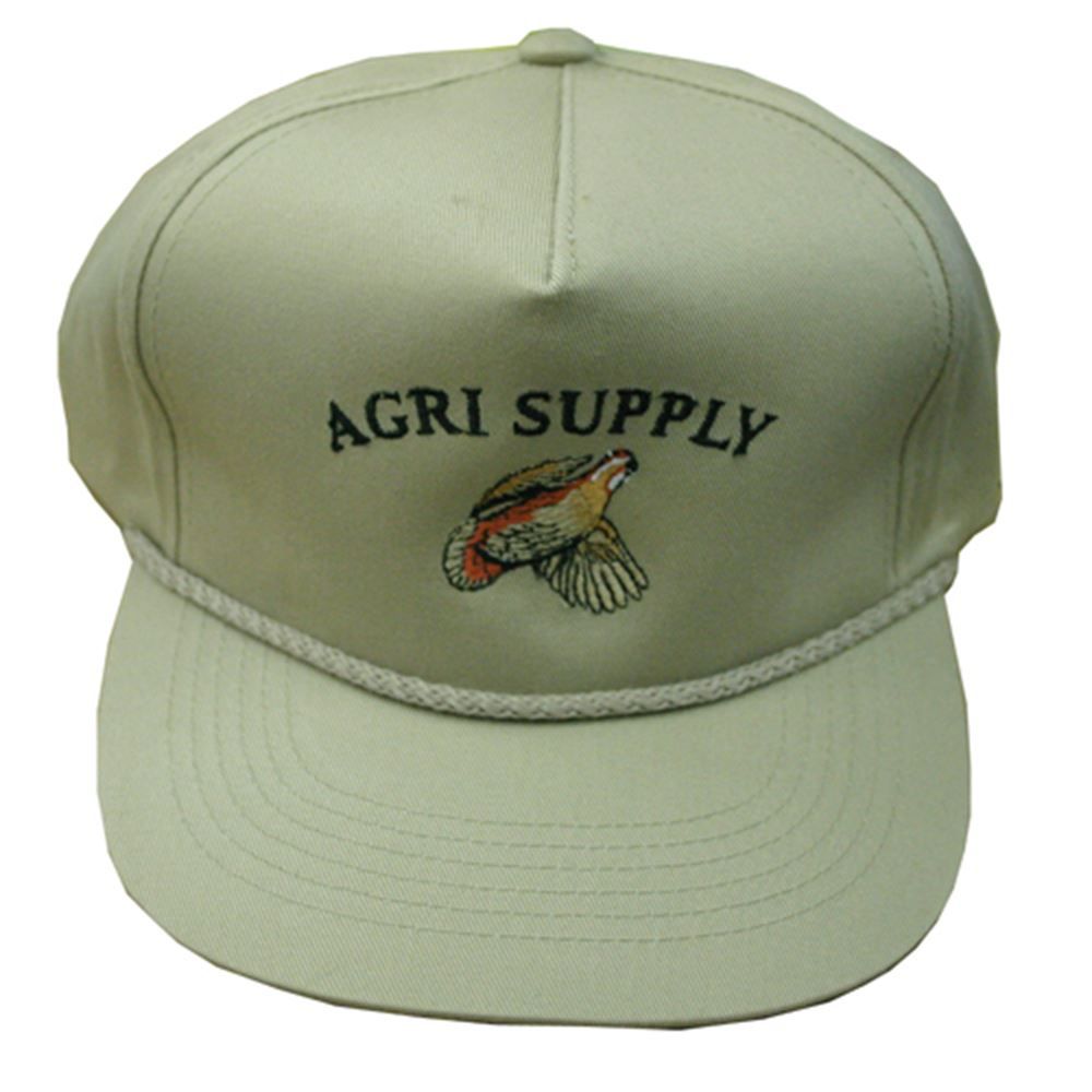 Great for hunting and camping trips or daily wear, this khaki Agri Supply cap has a quail embroidered on the front. It can fit 22 in. to 24 in. heads.
