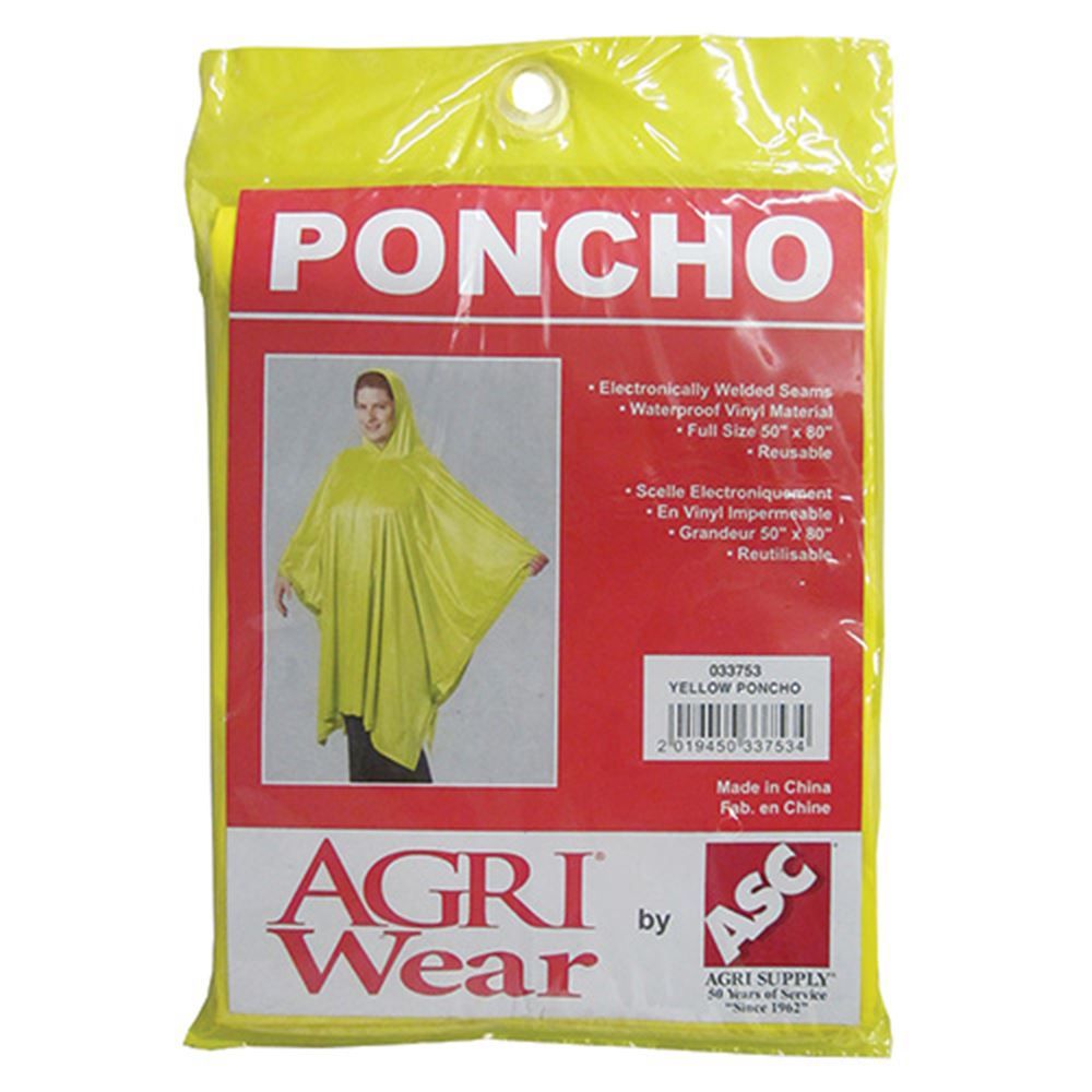 Be prepared if a rain shower strikes at an outdoor sporting event or festival. This lightweight waterproof poncho by Agri Wear® is constructed from vinyl and has a hood. This poncho is yellow in color and reusable.