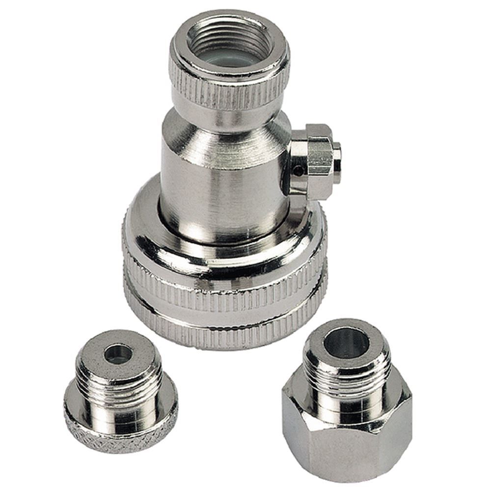 Perfect for filling tires with liquid. Easy to use featuring a push-button bleeder valve that can release the trapped air. Contains two extra bushings that fit standard air/water valves, new-style gas flow valves, large boar valves, and extensions, or just the standard stem.
