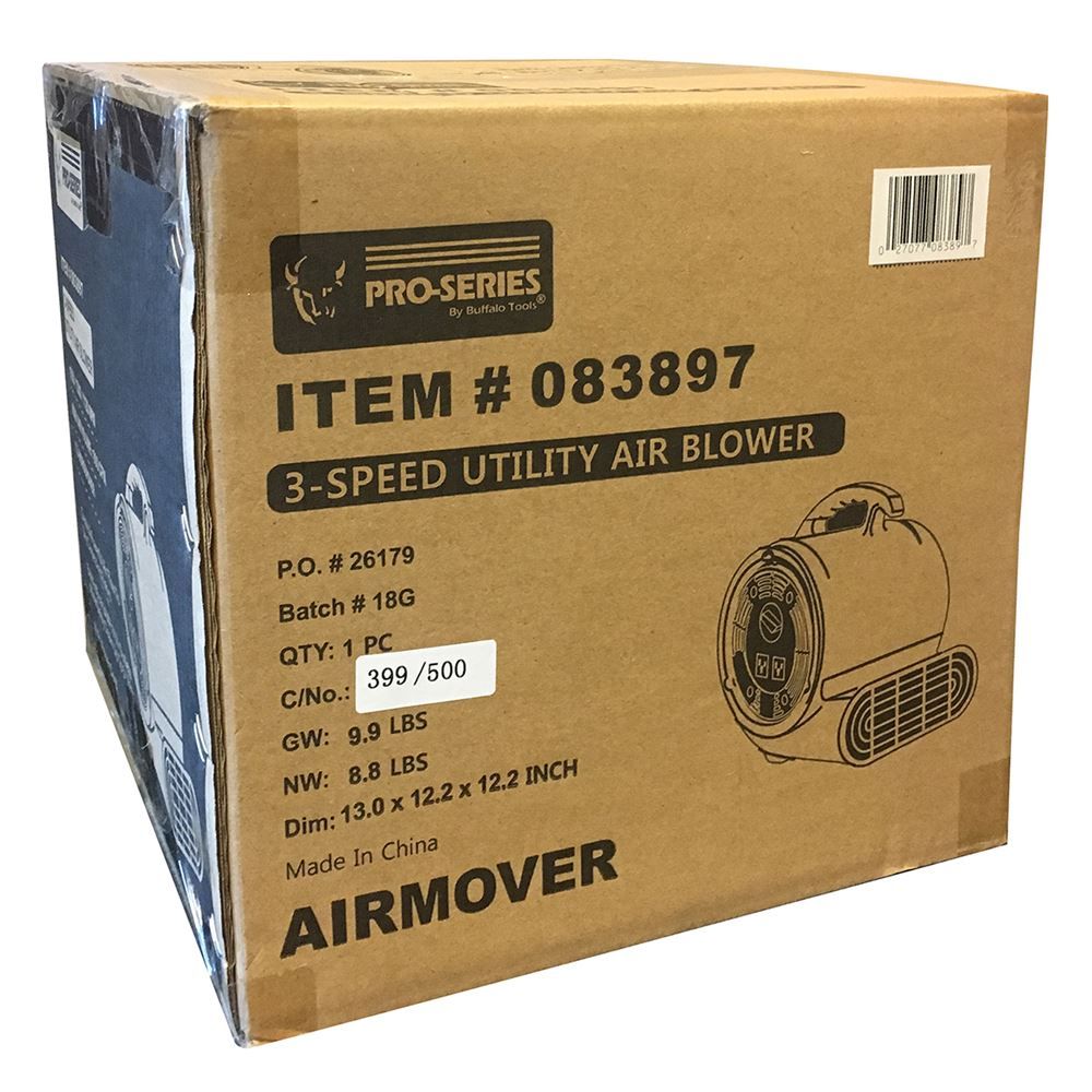 Looking for a 3-speed Utility Air Blower? This Pro-Series Air Mover Blower measures 10.5 x 13 x 12 and only weighs 8 pounds and can be placed side by side to cover a larger area.