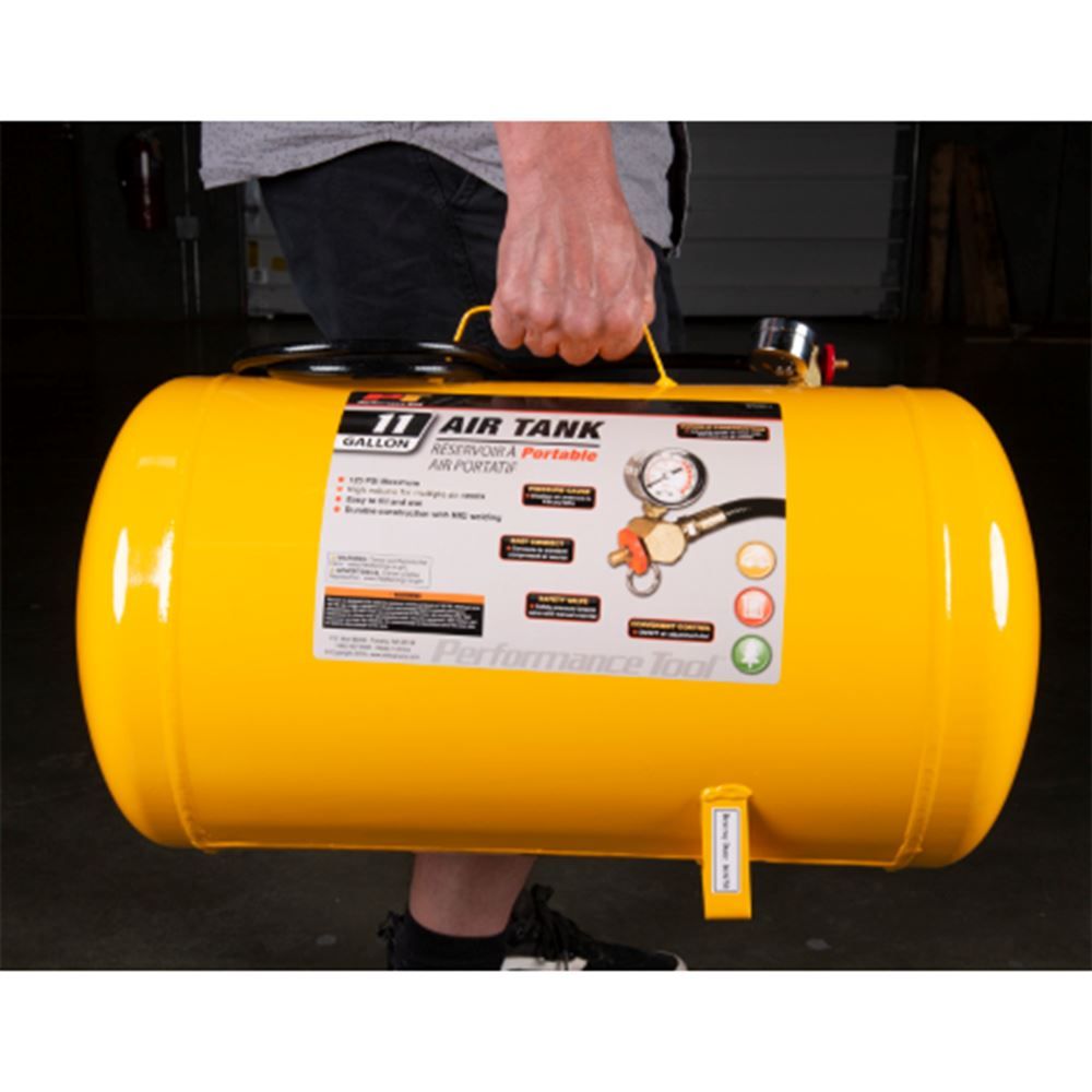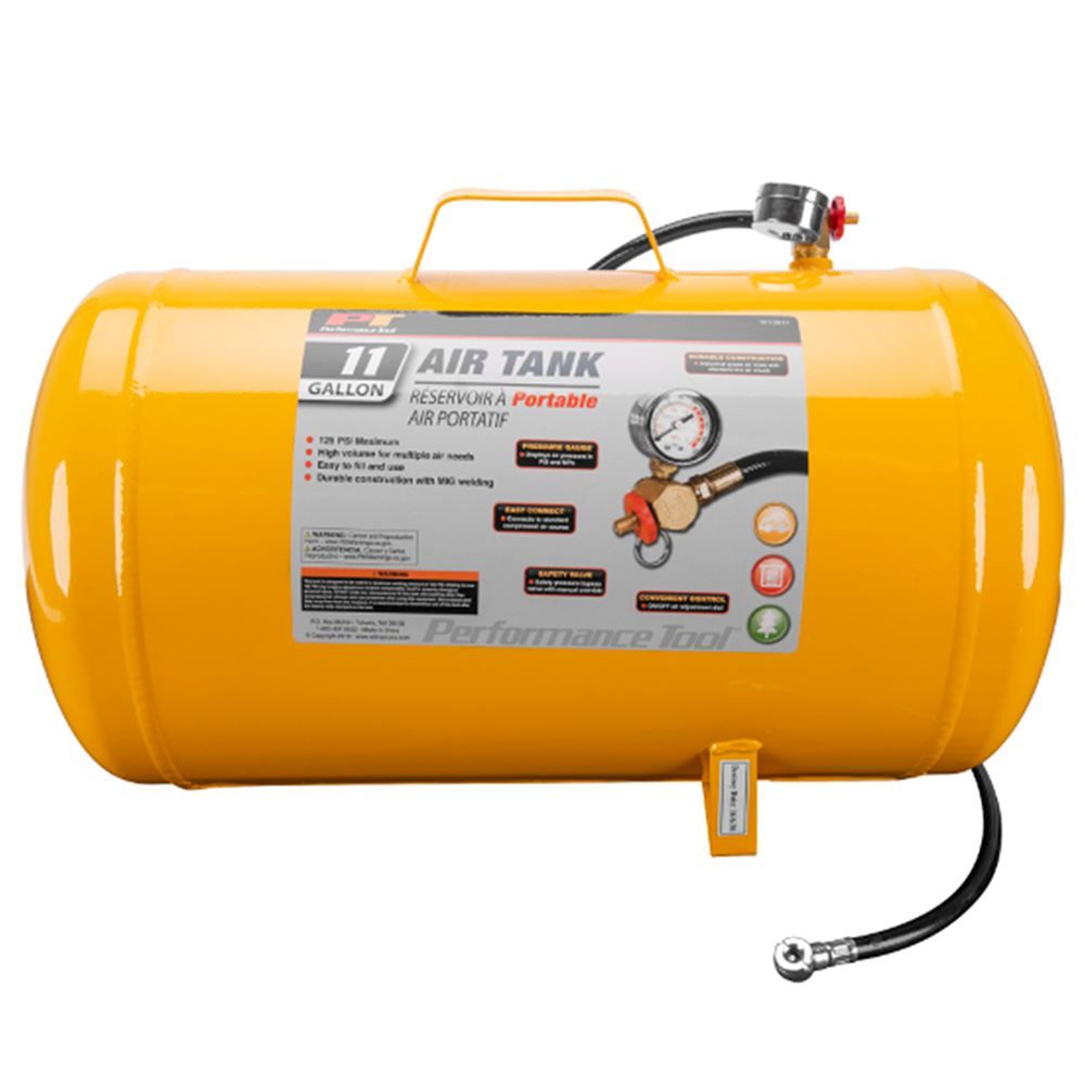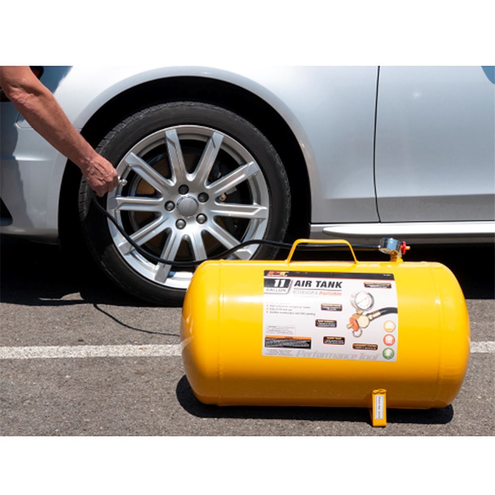 Inflate tires with this portable air tank with a 125 PSI maximum pressure. Just fill the tank with a separate air compressor and take this tank where ever you need to inflate a tire.