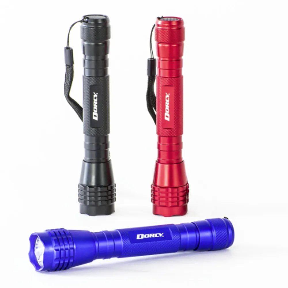 Designed with an adjustable beam, this aluminum flashlight changes from spot light focus to flood light. The anodized aluminum construction is strong and durable.