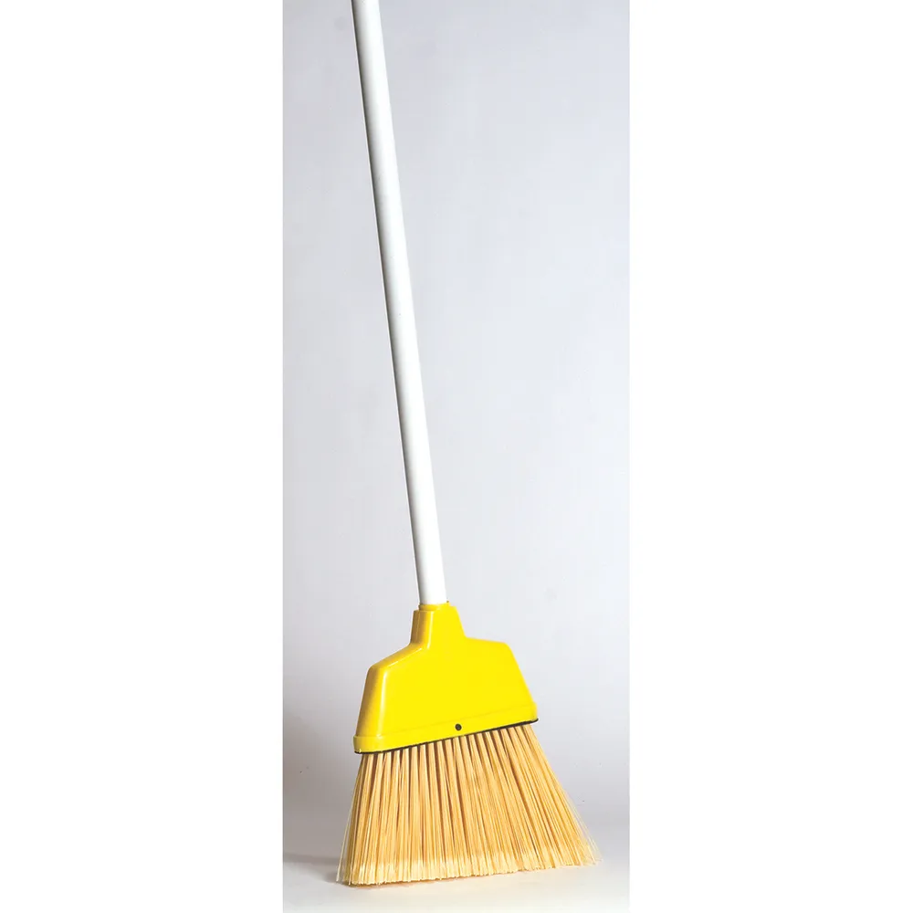 This angled broom is angled enough just enough to reach into hard-to-reach areas. It has a 48" painted handle.