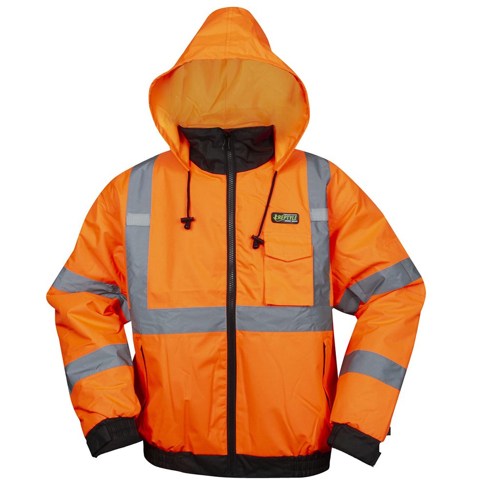 This men's large Cordova Reptyle™ Bomber jacket is waterproof and wind resistant, and features a double stitch and tapered seams for durability and 300 denier polyester shell.