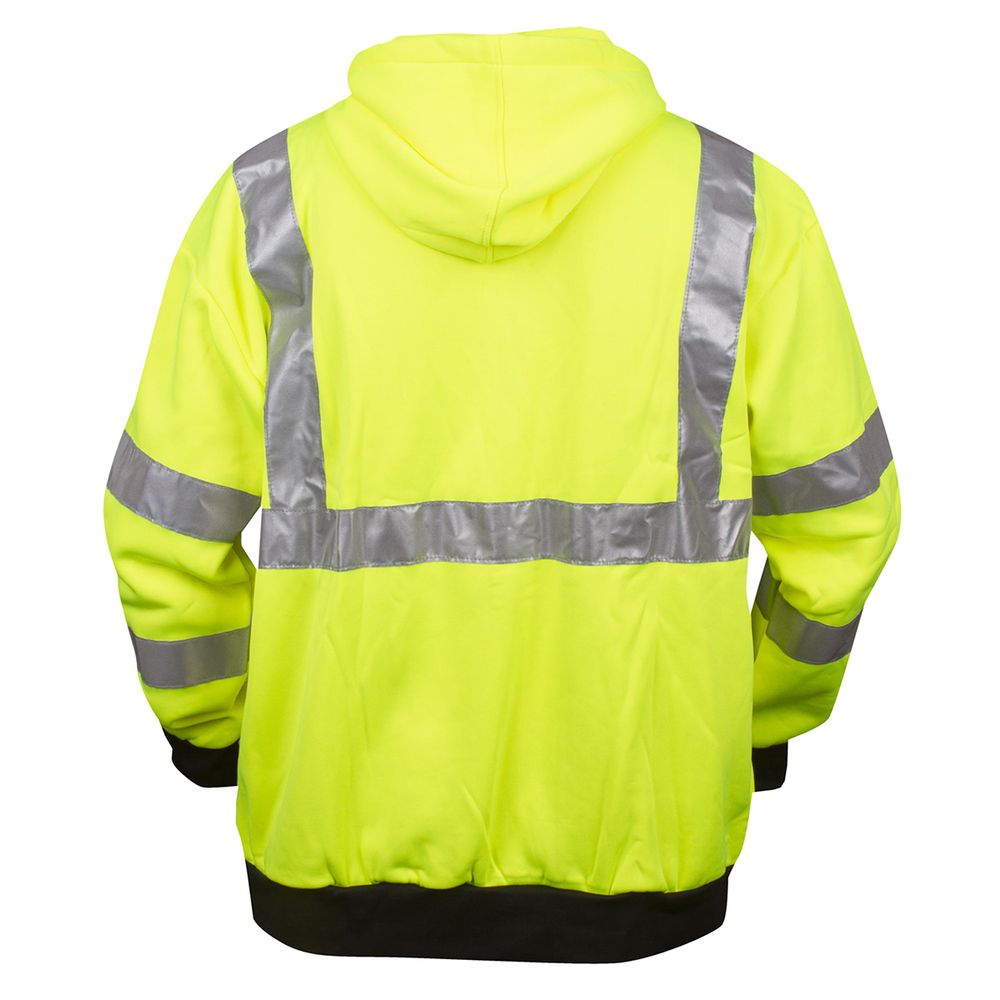 This men's size 3XL Cordova hi-vis lime, hooded sweatshirt is constructed of 300-gram polyester fleece fabric with a birdseye polyester lined hood.