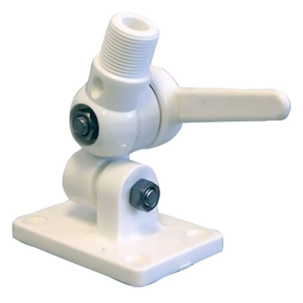 This marine antenna base allows for full fold down. It is made from white nylon with stainless steel hardware. Mounting hardware not included.