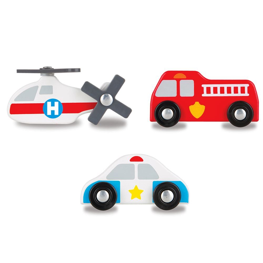 - Toy Vehicles included: Firetruck, police-car, helicopter