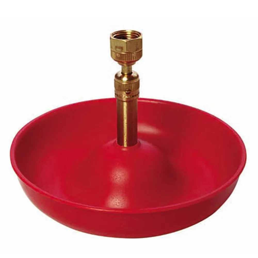 Supply your baby chicks and turkey poults with a reliable source of clean water. An extra-shallow bowl helps reduce the risk of baby birds drowning. Everything you need is included to hook up to any standard half-inch NPT pipe. Heavy-duty plastic bowl with non-rusting brass fountain stem. Valve safely operates between 20 and 50 psi. Holds 1.5 pints of water and waters up to 200 baby chicks. The bowl measures 7.25 inches in diameter and 1.75 inches deep. (NOTE: This fount will attach to a garden hose with an adapter going from 1/2 inch male iron pipe to 3/4 inch female hose; adapter not included with the product.)