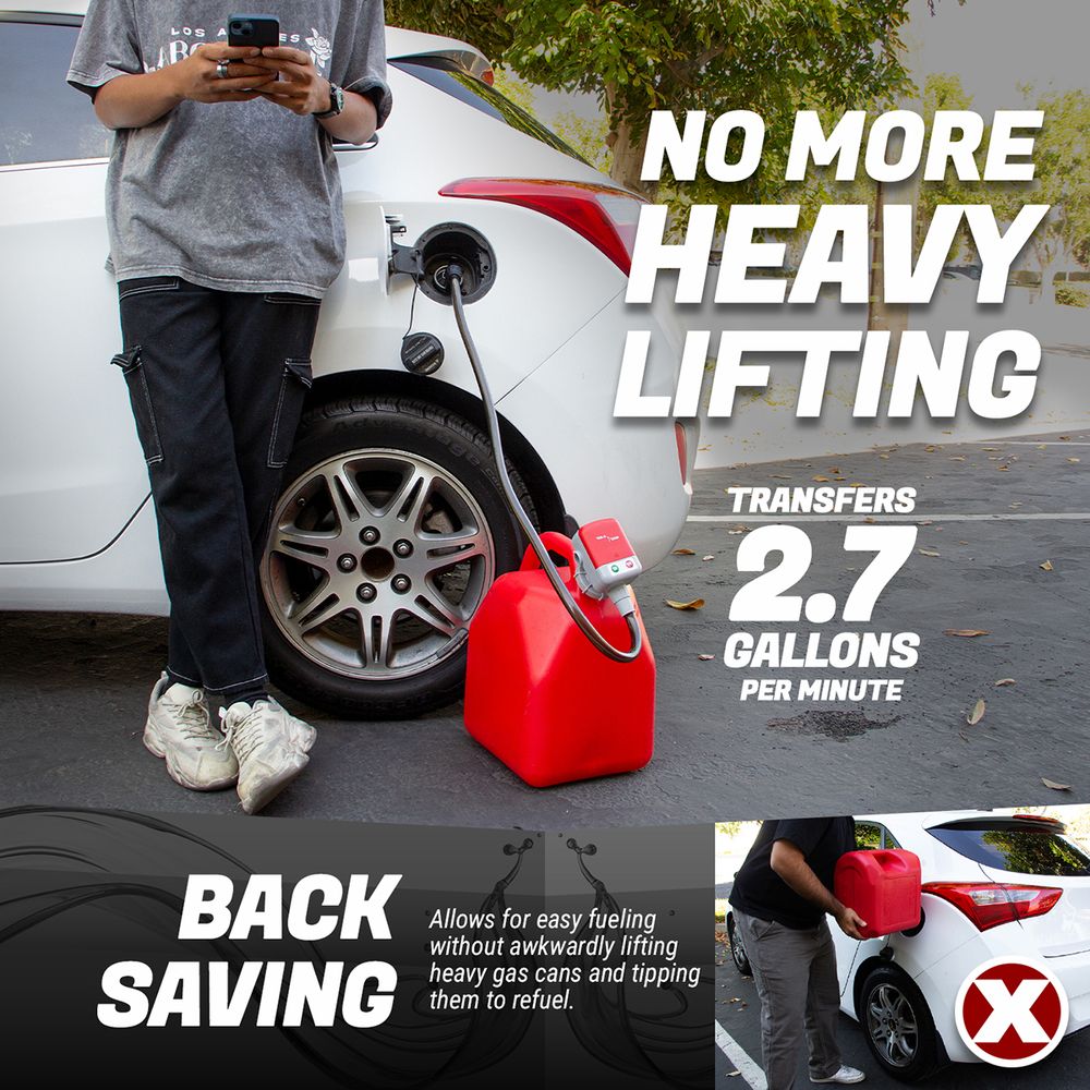 TERA Pump™ 3rd generation TRFA01 Auto Stop Fuel Transfer Pump saves your back and wasting gas while filling up. With a simple push of a button, your transfer pump can turn on and off and can pump 2.7 gallons per minute. CSA certified under UL standards. Requires 4 AA batteries not included.