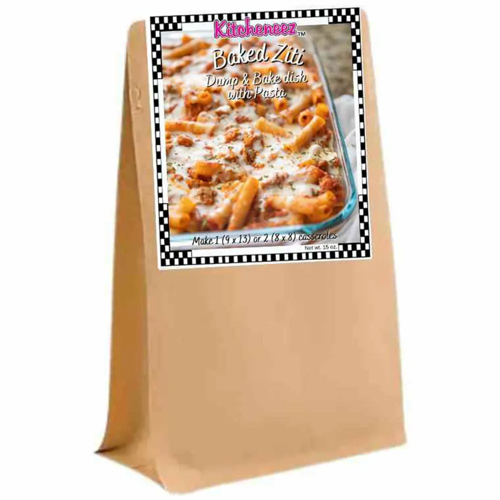 Kitcheneez™ Baked Ziti Dump 'n Bake Meal Kit with Pasta Included allows you to mix all the ingredients for a delicious meal right in your baking dish before putting it in the oven.