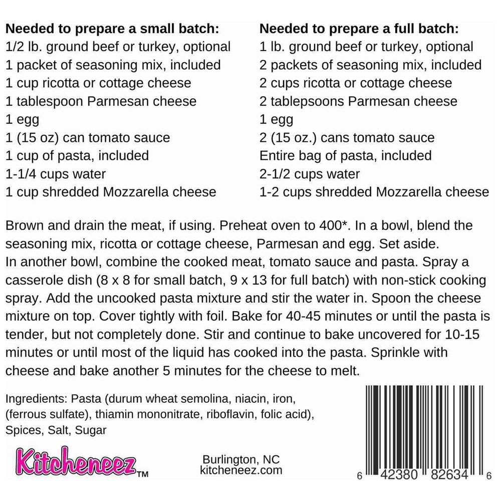 Kitcheneez™ Baked Ziti Dump 'n Bake Meal Kit with Pasta Included is dairy free, meat and soy free, seed free, sugar free and parsley free