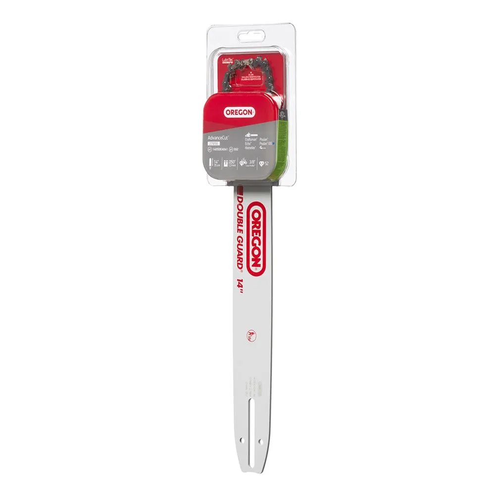 Prevent any future mishaps by replacing chainsaw parts like chainsaw bars and chains. This kit includes a 14 in. low-kick chain which offers a smooth cutting performance. The 14 in. bar has a rack and pinion system for safe tensioning and a Wedge Lock™ bar-lock element that safely holds the chain in place. It is recommended that bar be replaced after the chain has been replaced twice.Please view the chainsaw brands list below for the compatible chainsaw models.