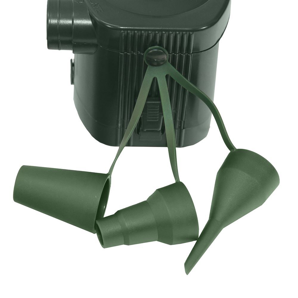 With three different adapters to fit a variety of inflatables, this battery air pump works with four D cell batteries. Not only will it inflate most large inflatables, but it will also deflate to remove all the air making storage much easier. Save time and headaches with this battery powered air pump, and start enjoying the great outdoors.