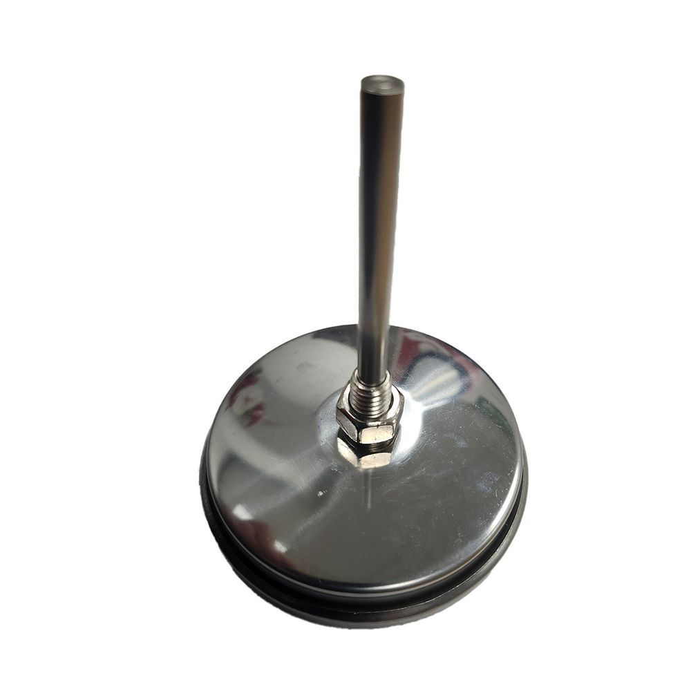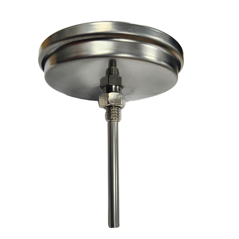 Cooking meat is a breeze with this pig cooker thermometer that has a range of 50°-550°. The face is 2-3/4 inches across, the stem is 2-1/2 inches long and stainless, and attaches easily with a set screw. This BBQ cooker thermometer is perfect for grills, smokers, and pig cookers.