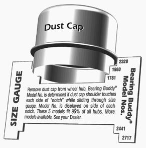 Measure the inside diameter of the hub or the outside diameter of the dust cap shoulder (the part that fits into the hub) with a caliper or micrometer. The measurement needs to be in thousandths of inches. Most marine dealers, auto parts stores and service stations have a caliper or micrometer and will gladly measure your dust cap for you. You have two options to finding the right size for you: