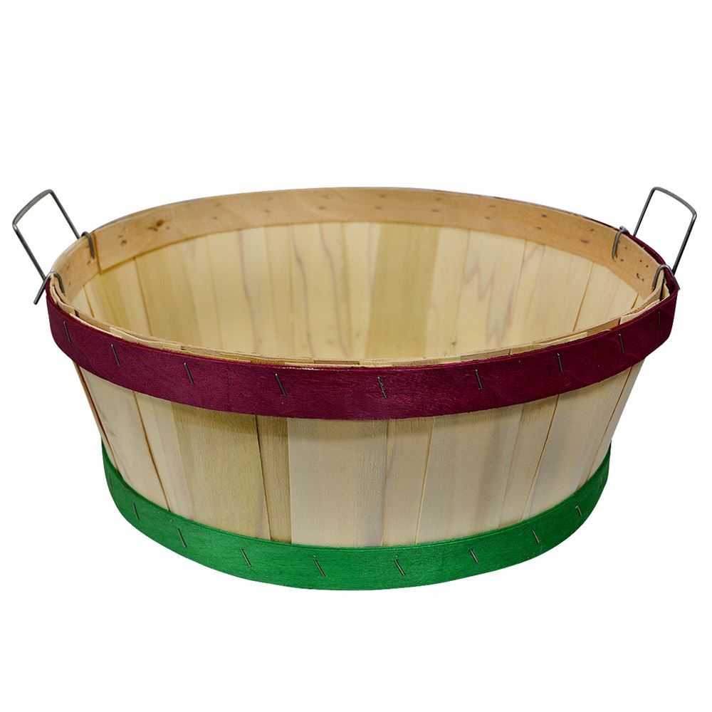 This half-bushel tub with dyed bands and handles would be great for a variety of uses from traditional harvesting, gathering to storage and decorative displays.