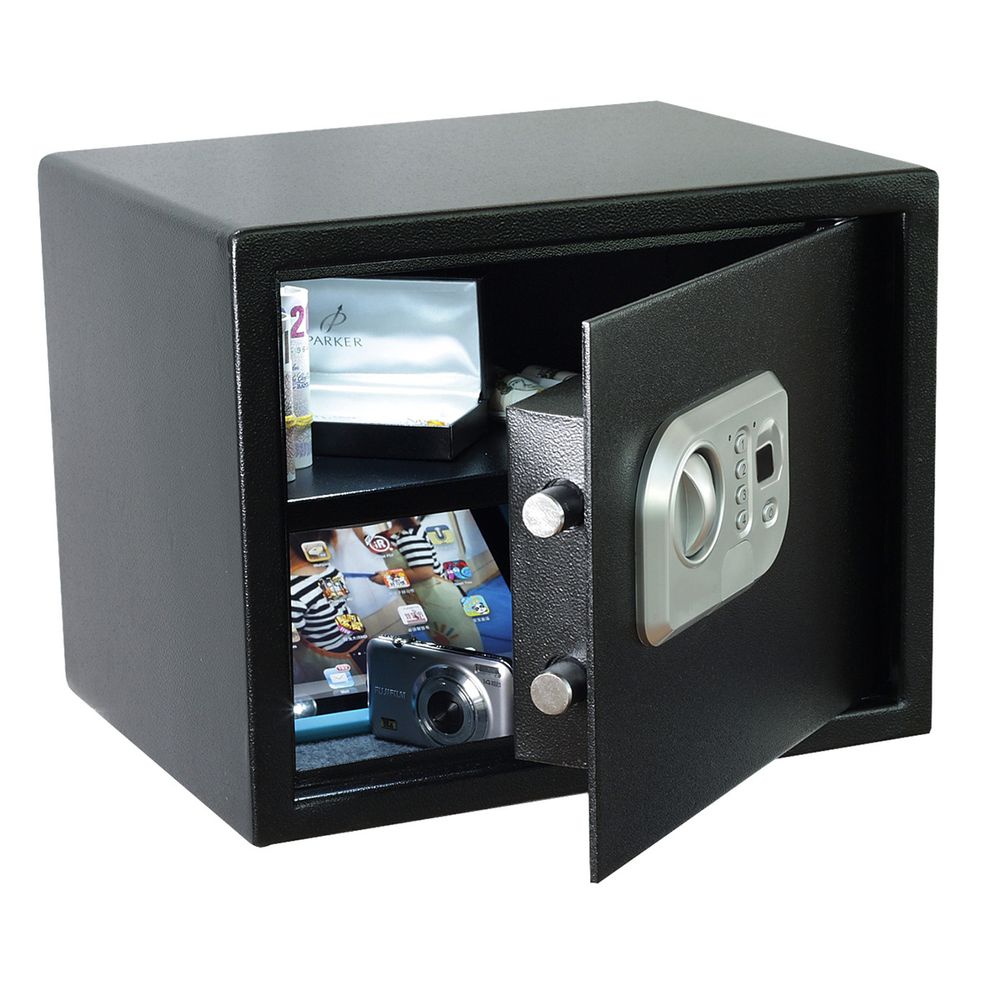 This Biometric Fingerprint Pistol Safe accepts up to 20 unique fingerprints and can hold one pistol.
