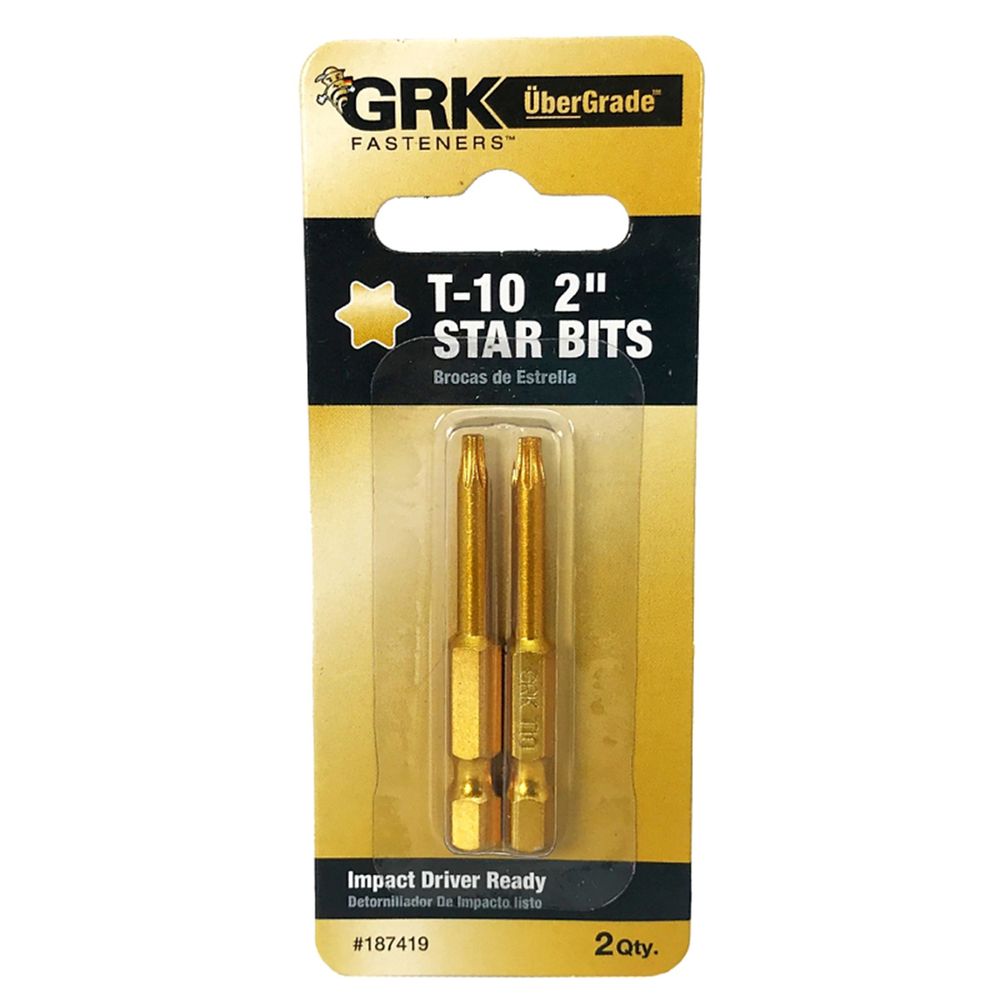 GRK Fasteners Drive Bit, Star Drive, T10 Drive, Yellow, 2 in Length, Suitable for #8 Trim Head Screw