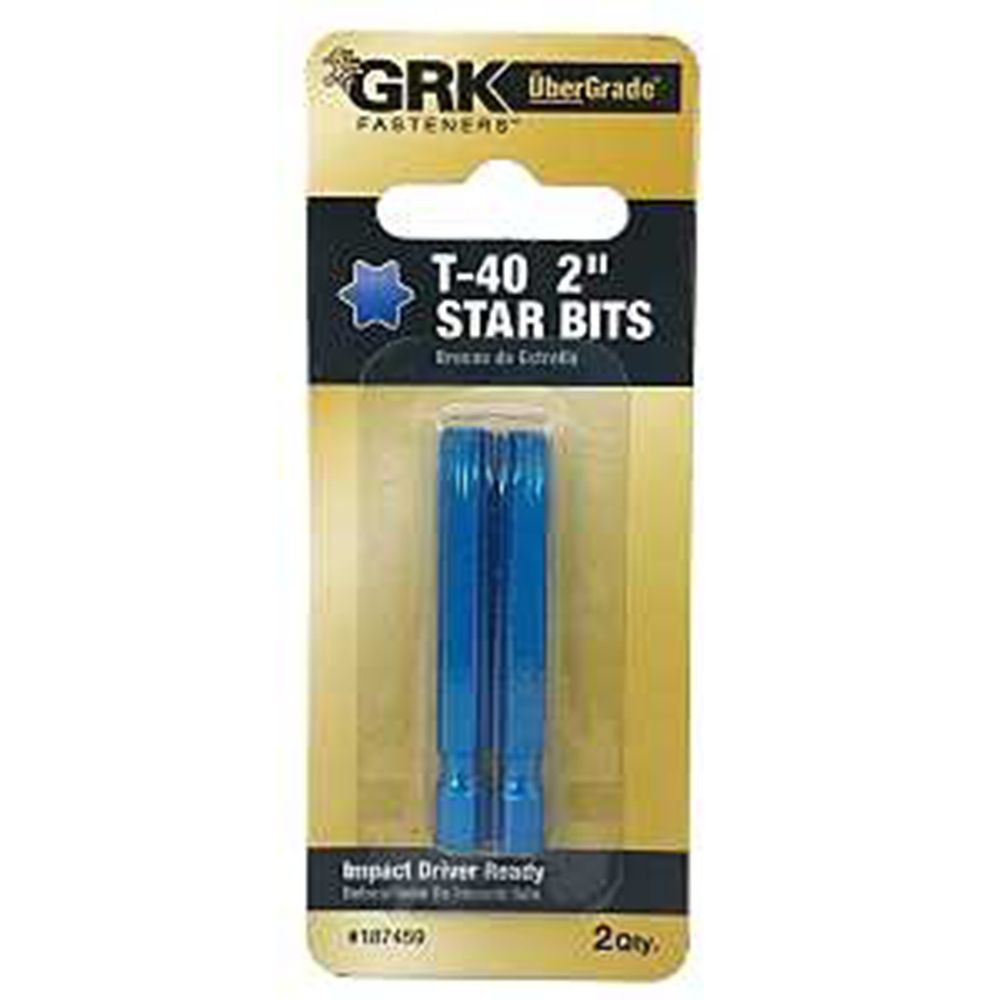 GRK Fasteners Drive Bit, Star Drive, T40 Drive, Hex Shank, Steel, 2 in Length
