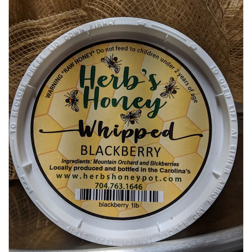Herb's Whipped Honey is a mix of seasonally gathered raw honey and crystallized honey. Natural spices and dehydrated fruit are added to create various flavors. Herb's Whipped Honey goes great with waffles, pancakes, sandwich spreads or as a dessert topper.