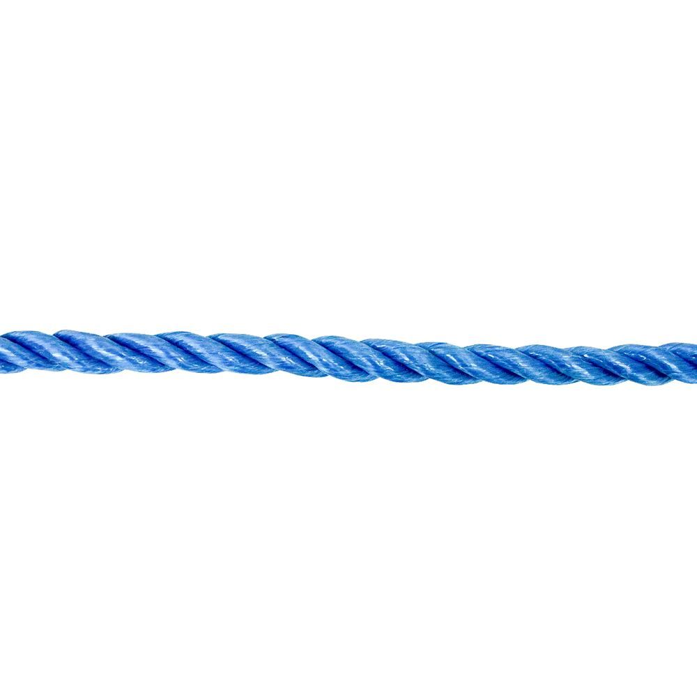 This polypropylene rope has a twisted construction with a thick surface that helps prevent snagging and other abrasions from forming. This poly rope has a working load limit of 441 lbs., and a breaking strength of 2,203 lbs. Great to use for boating purposes, on docks and piers, this blue poly rope works well in damp or wet conditions. It is 50 feet long and has a resistance against mold and mildew.