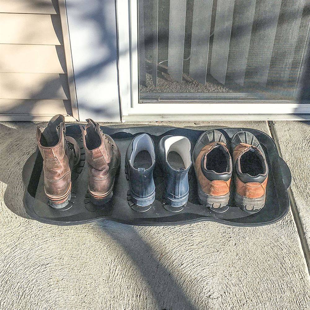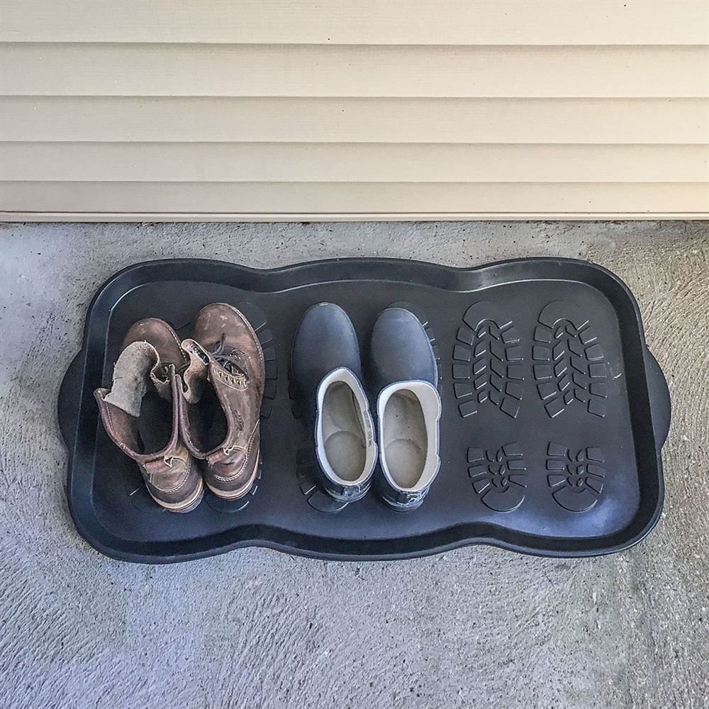 Buffalo Tools® rubber boot mat can hold up to three pairs of boots and help to keep your house free from debris.