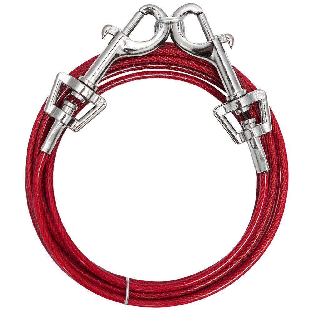 This vinyl-coated Large Tie-Out is a direct connect system with swivel snaps that eliminates tangling, and incredibly strong. Rated for dogs up to 60 pounds.