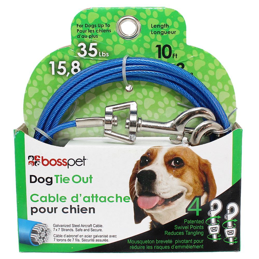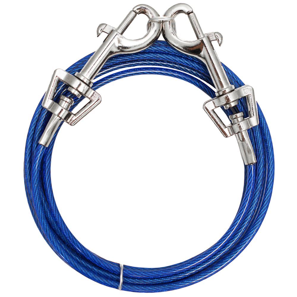 This vinyl-coated Medium Tie-Out is a direct connect system with swivel snaps that eliminates tangling, and incredibly strong. Rated for dogs up to 60 pounds.